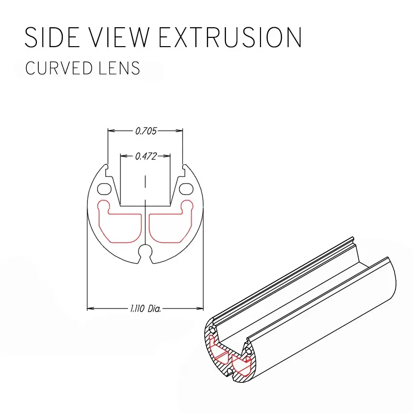 The Lumirod TRX 110C Extrusion is an accessory for the closet rod product Lumirod. Each extrusion is 96″ long.