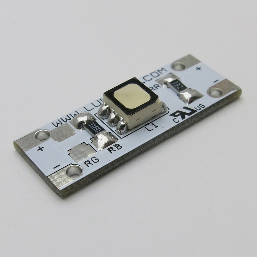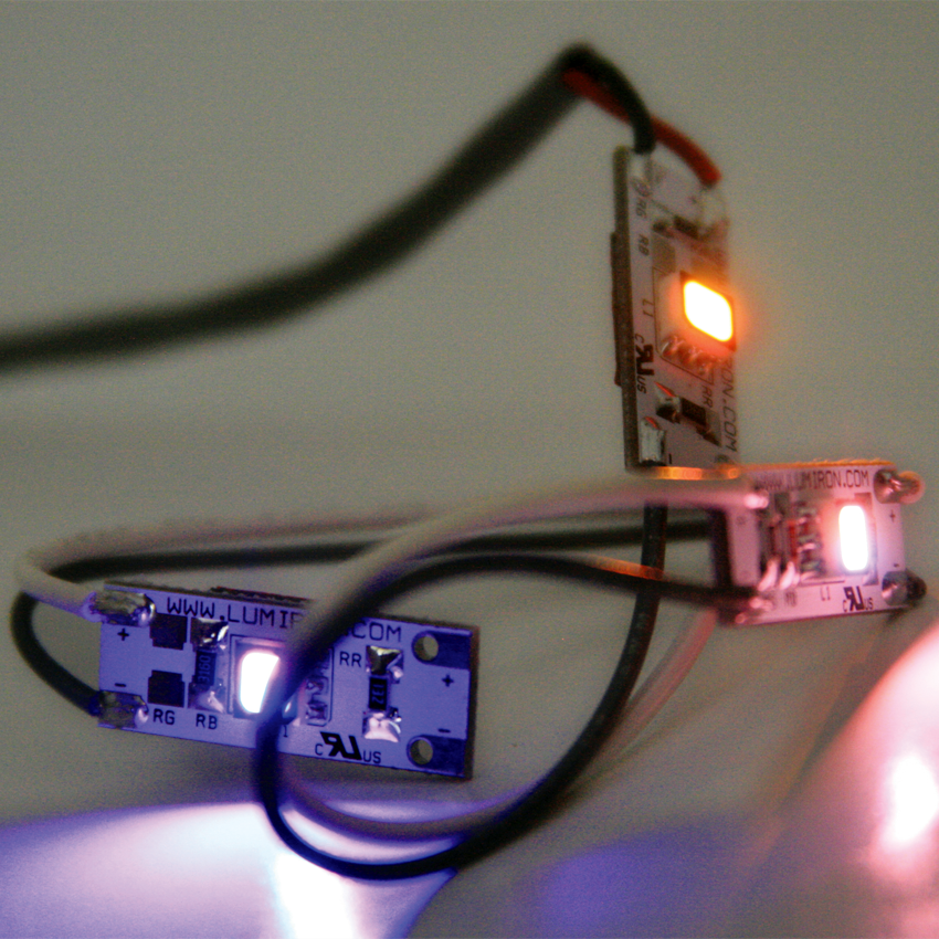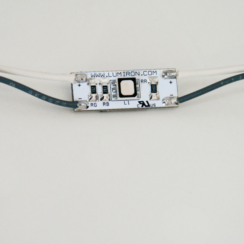 The LUMIRON Lumos LMT-101-1L-T3 linear module is an LED system for hard to fit cove areas, accent, and channel applications. This single LED module measures 1.01 x 0.3 Inches, comes standard wired with 4 modules per linear foot and has a total power consumption of only 0.5W per module. Available in a variety of truly unique colors and RGB, the Lumos LMT-101-1L-T3 linear module is a high efficiency, a dimmable LED technology that easily mounts to a multitude of surfaces for a long-lasting impactful luminosity.