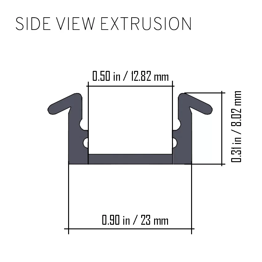 The Lumiron TRX1-L001 Extrusion is an accessory for the Aluminum Profile LED Strip TRX1-L001. Each extrusion is 94″ long.